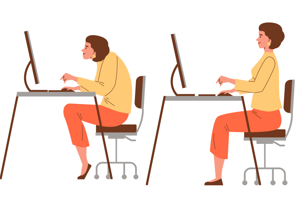 パソコンやスマホを使う時間が長くなると、知らず知らずのうちに前かがみの姿勢になってしまいます。